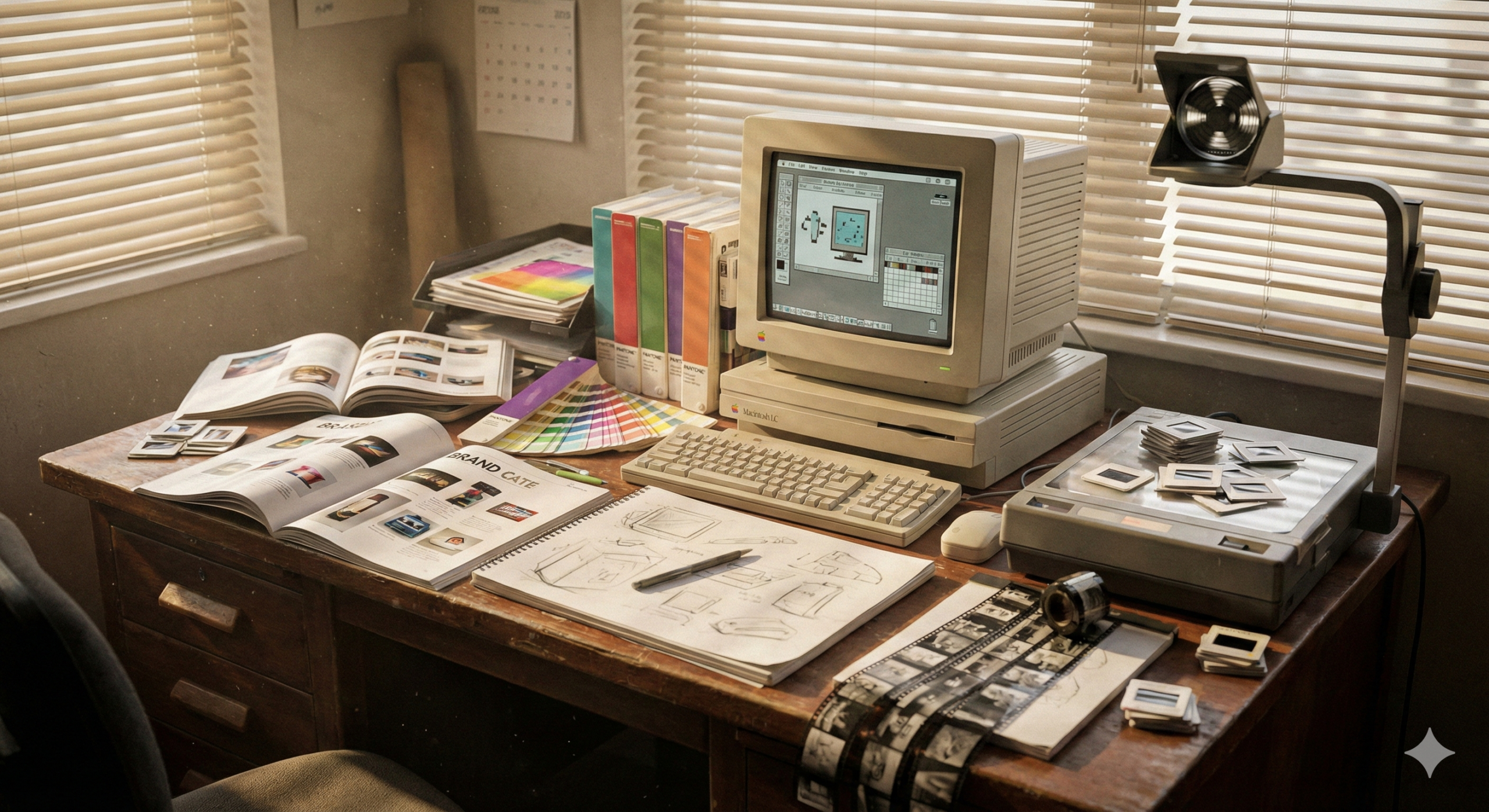 A Canopus nasce em um cenário onde a comunicação ainda é predominantemente analógica. Outdoors, anúncios impressos, catálogos corporativos e eventos presenciais dominam o mercado. A agência se estabelece oferecendo soluções criativas para marcas que buscavam impactar através de materiais gráficos de alta qualidade e campanhas publicitárias tradicionais. É a era do contato direto, das reuniões presenciais e da construção de relacionamentos através de portfólios físicos e apresentações em acetato.
